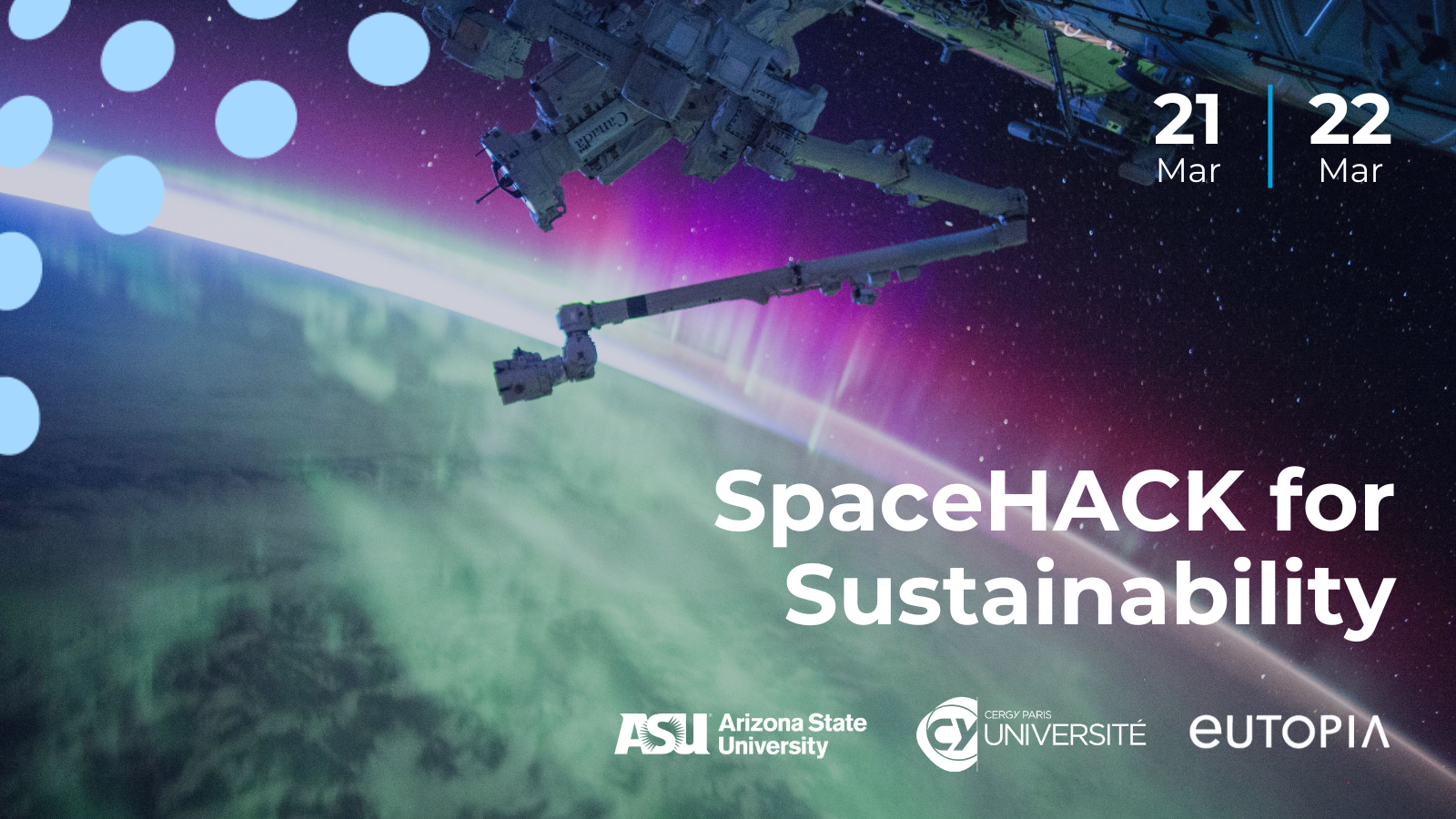 We are pleased to invite students across the EUTOPIA Alliance to participate in the SpaceHACK for Sustainability on March 21-22, either in person at CY Cergy Paris University or online.