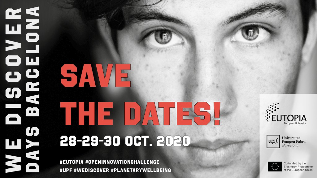 The Pompeu Fabra University organises the WeDiscover Days Barcelona on 28, 29 & 30 October 2020, as the first step of the Open Innovation Challenge initiative, which forms the axis of the Place Making policy of EUTOPIA.